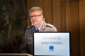 Die Reihe der Fachvorträge am Mittwochmorgen wurde von Herrn Oberstarzt Dr. von Uslar aus dem Kommando Sanitätsdienst der Bundeswehr eingeläutet. Er berichtete über die zukünftigen Herausforderungen und Anforderungen an Sanitätsoffiziere, den Sanitätsdienst, die Bundeswehr und die NATO insgesamt. Aktuelle politische Ereignisse und Einsätze wie z.B. an der NATO-Ostflanke werden die strukturellen Überlegungen der Bundeswehr in den nächsten Jahren entscheidend prägen und verändern.