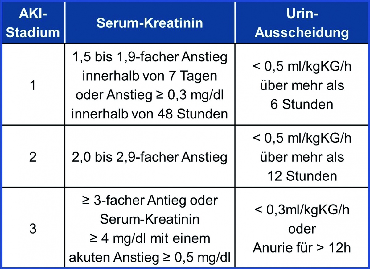 Tab. 1: Stadieneinteilung des ANV gem. KDIGO-Leitlinie (nach [16])