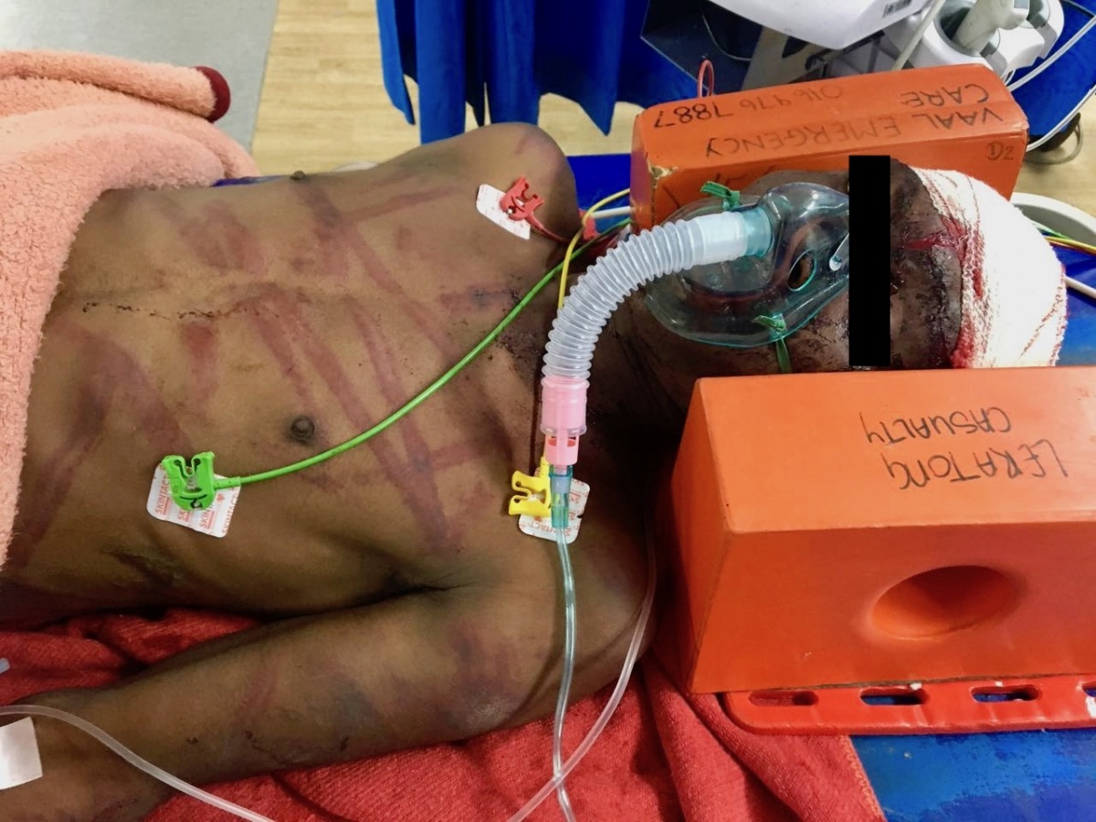Beginn ist morgens um 7:00 h im Schockraum. Hier findet die morgendliche Übergabe mit dem Visitieren der nächtlichen Schockraum-Patienten statt. Gerade an den Wochenenden ist es gut möglich, dass alle Betten belegt sind, und dennoch unbehandelte Patienten auf eine akute Notfallbehandlung warten. Anschließend erfolgt die Übergabe in der chirurgischen Notaufnahme, wo nach dem gleichen Prinzip verfahren wird. Es folgen die traumatologische Station (trauma unit) und die Intensivstation. Direkt zu erledigende Aufgaben werden an Alt- und Jungassistenten sowie PJ-ler verteilt. Im Anschluss an die Visiten findet immer eine Besprechung mit allen beteiligten Ärzten und Studenten statt, in der sowohl die Operationen des vergangenen Tages, als auch diejenigen, für den kommenden Tag präsentiert werden. Je nach Einteilung im Dienstplan und Fachabteilung geht nun jeder seinen Tagesaufgaben nach. Wichtig anzumerken ist an dieser Stelle, dass in der „Trauma Unit“ sowohl Fachärzte und Weiterbildungsassistenten für Chirurgie wie auch für Notfallmedizin arbeiten. Der in Deutschland geplante Facharzt für Notfallmedizin gibt es bereits in Südafrika, da sich dieser dort im Alltag mehr als bewährt hat. Da für deutsche Anästhesisten das Schockraummanagement im Vordergrund steht, ging mein Dienst dort weiter. Meistens begann es damit, die Patienten der vorherigen Nacht weiter zu betreuen, Untersuchungen anzufordern, BGAs durchzuführen, E-Fasts zu wiederholen, Wunden zu versorgen, bei Brandverletzungen die verbrannte oder verbrühte Haut zu entfernen, intravenöse Zugänge -zentral oder peripher- sowie Thoraxdrainagen zu legen. Anders als in Deutschland kann es aufgrund der hohen Anzahl an Patienten und dem mangelnden Patientenabfluss durchaus sein, dass diese für einen längeren Zeitraum (bis zu 48h) im Schockraum verbleiben und dort u. a. auch intensivmedizinisch betreut werden müssen. Währenddessen werden durch den Rettungsdienst (Rettungswagen oder Hubschrauber) als auch durch Privatpersonen immer wieder Neuaufnahmen, oftmals unangekündigt, gebracht. Die Triage erfolgt am Eingang der Notaufnahme durch einen südafrikanischen PJ-ler, Jung- oder Altassistenten, je nach Verfügbarkeit. Wird entschieden, dass ein Patient im Schockraum versorgt werden muss, also ein Schwer- oder Schwerstverletzter ist, muss noch festgestellt werden, ob er stabil oder instabil ist. Ist der Patient stabil, so wird er einer sog. Lodox-Untersuchung unterzogen, wenn er Schussverletzungen aufweist, aufgrund eines Verkehrsunfalls vorstellig wird oder generell ein Risiko für Knochenbrüche hat. Lodox ist ein low-dose-Röntgengerät, welches im Schockraum steht und eine Ganzkörper-Röntgenaufnahme macht. Dies ist als Ersteinschätzung sehr hilfreich, da ein CT aufgrund der hohen Auslastung in den ersten Minuten meistens nicht zur Verfügung steht. Im Anschluss daran wird der Patient nach dem gängigen ABCDE-Schema versorgt, bei Problemen bei einem der Punkte wird sofort interveniert und der Patient ggf. zügig in den OP gebracht. Insbesondere an Wochenenden, an den Auszahlungstagen des Lohnes oder auch nach Fußballspielen der einheimischen Teams von Soweto steigt die Zahl der Patienten enorm (erhöhte Gewaltbereitschaft), sodass zeitweise die Notaufnahme und hier insbesondere der Schockraum keine Behandlungskapazität mehr bietet. In Zahlen gesprochen sind zwischen 15 und 30 Schockraum-Patienten keine Seltenheit. Die meisten Patienten sind dabei junge Männer. Hier ein Zahlenbeispiel einer meiner Wochenend-24h-Dienste: 29 Schockraum-Patienten davon u. a. vier Schussverletzungen, neun Stich- und Schnittverletzungen fünf stumpfe Traumen, dabei zwei Verkehrsunfälle, drei Körperverletzungen durch Überfälle/Schlägereien, eine Verbrennung und ein versuchter Selbstmord durch Erhängen.