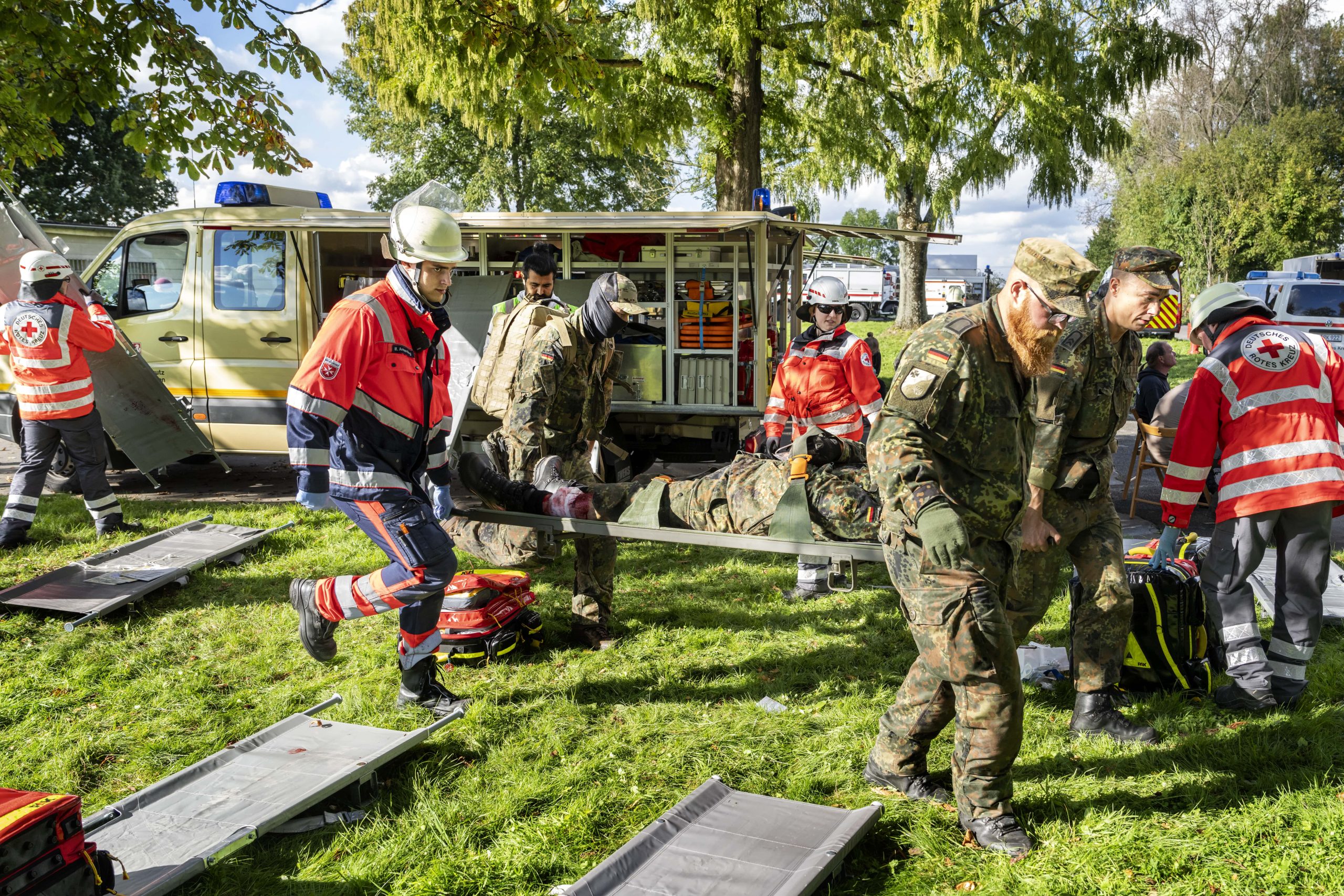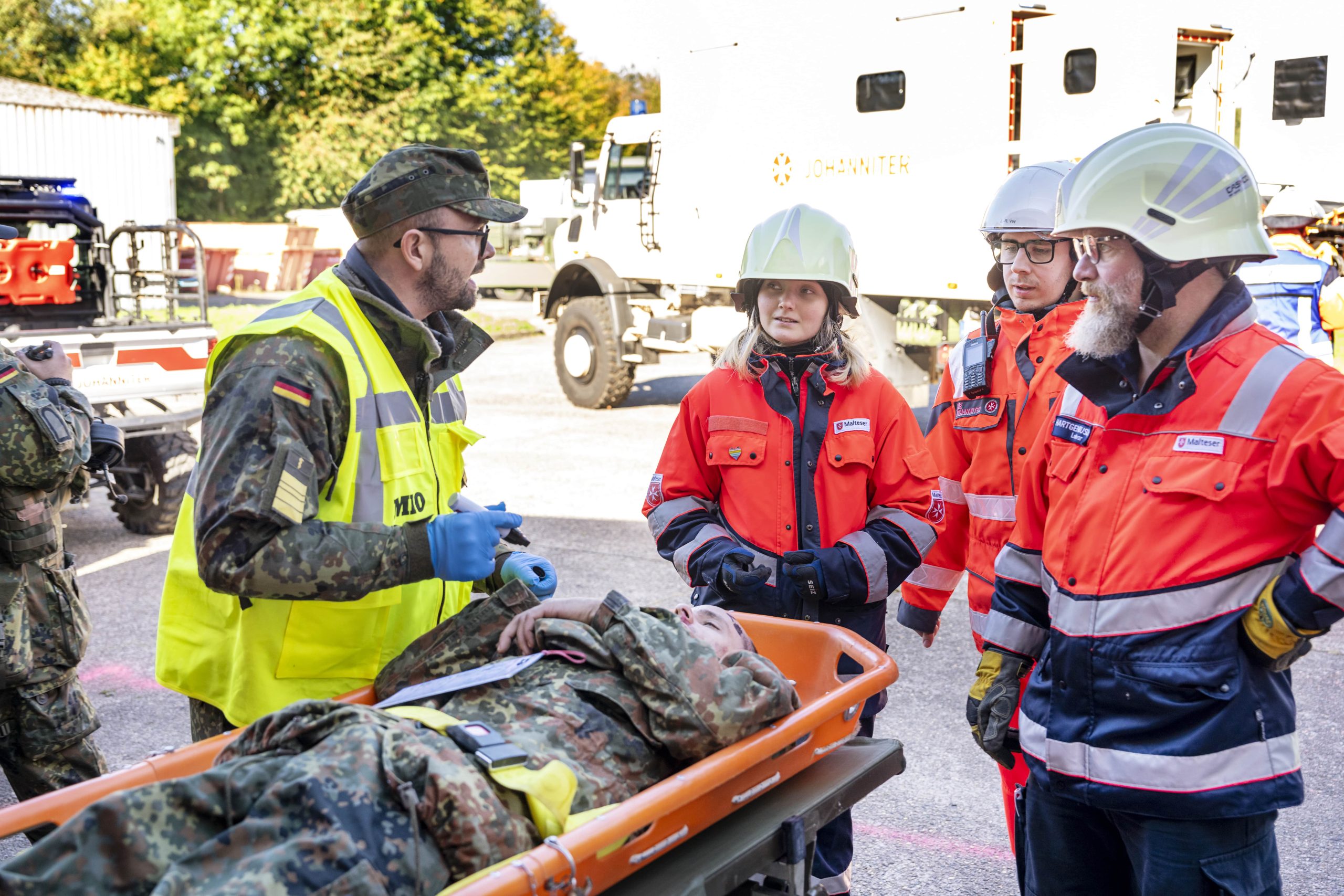 Im Verteidigungsfall ist mit einer hohen Zahl an Verwundeten zu rechnen, die transportiert werden müssen. Weder die Bundeswehr noch der öffentliche Rettungsdienst werden dies allein bewältigen können. Daher sind Malteser, Johanniter, DRK und andere als unterstützende Organisation eingeplant – beispielsweise beim Transport von Patienten mit Lazarettzügen aus dem Einsatzgebiet heraus.