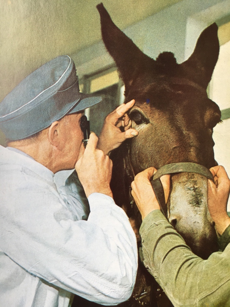 Beginnen wir mit dem Wort Veterinär. Es leitet sich ab vom lateinischen Adjektiv „veterianrius“ und bedeutet „zum Zugvieh gehörig“. Veterinarius als Substantiv bedeutet Tierarzt oder Veterinär. Damit ist schon ein Hinweis gegeben, womit sich der Veterinarius ursprünglich beschäftigt hat, nämlich mit dem Zugvieh. Und dieses wurde eingesetzt in der Landwirtschaft, im Transport von Gütern und Personen und beim Militär. In deutschen Streitkräften wurde erstmals kurz nach dem 30-jährigen Krieg ein Rossarzt erwähnt. Dies war aber nur eine kurze Episode. Erst in der zweiten Hälfte des 18. Jahrhunderts wurden tierärztliche Bildungsstätten eingerichtet. Grund waren Viehseuchenzüge, die die Versorgung der Bevölkerung mit tierischem Eiweiß und die Schlagkraft der Armeen gefährdeten. Die erste dieser Tierarzneischulen wurde 1761 in Lyon gegründet. Aber selbst noch in der zweiten Hälfte des 19. Jahrhunderts lag die wesentliche Aufgabe der Roßärzte vor allem im Königreich Preußen nicht in der Therapie der Armeepferde, sondern im Hufbeschlag. Dies veranlasste 1862 einen Abgeordneten im Preußischen Abgeordnetenhaus zu der Äußerung: „Der Tierarzt soll Hufschmied sein, der Hufschmied kann nicht Offizier sein, folglich kann der Tierarzt nicht Offizier sein.“