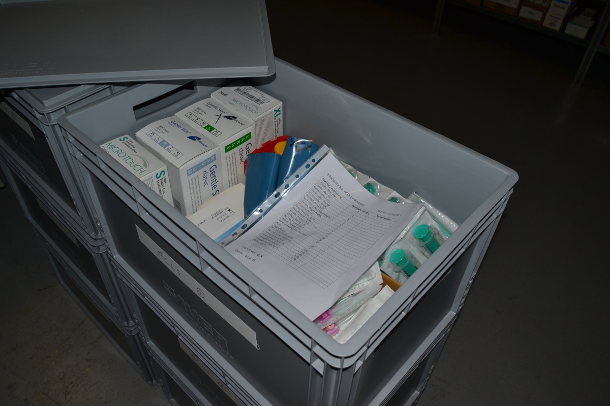 Für standardisierte praktische Ausbildungsinhalte werden vorgepackte und klar definierte Verbrauchsmaterialsätze in leicht zu transportierenden Kunststoffkisten bereitgehalten. Als Beispiel dienen hier die vorgepackten Verbrauchsmaterial Sätze für die zweitägigen ACLS (Advanced Cardiovascular Life Support) Kurse der angehenden Notfallmediziner SanStOffz.