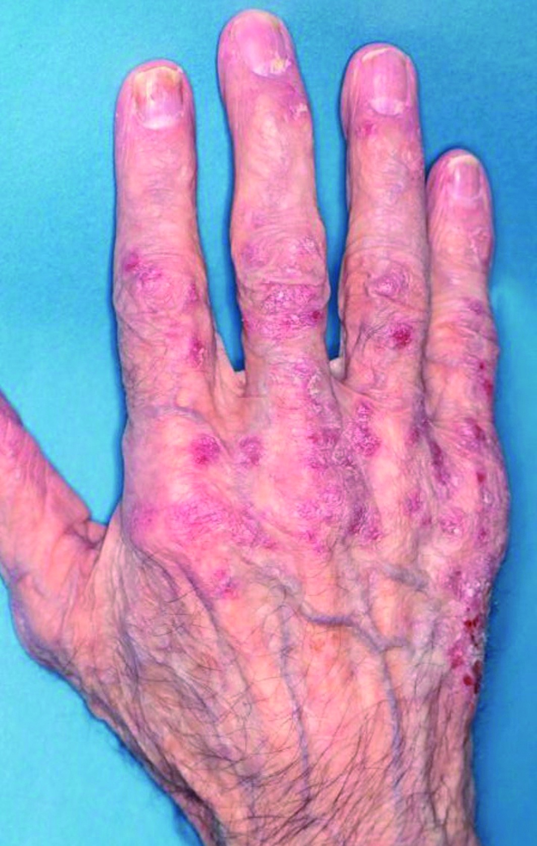 Das Berufskrankheitengeschehen zur BK 5101, das zu über 90 % Handekzeme betrifft, wird klinisch geprägt durch Kontakt-ekzeme [11]. Letztere sind primär exogen verursachte Dermatosen; es können jedoch auch primär endogen verursachte Dermatosen, die beruflich wesentlich verschlimmert werden, den Tatbestand der BK 5101 erfüllen [6]. Der Hauptanteil der Verdachtsanzeigen entfällt auf die Wirtschaftszweige Gesundheitswesen, Metallverarbeitung, Nahrungs- und Genussmittelgewerbe und Baugewerbe [11]. Die BK 5103 (beruflicher Hautkrebs durch UV-Licht) betrifft Beschäftigte, die aufgrund ihrer beruflichen Tätigkeit in besonderem Maße dem natürlichen UV-Licht ausgesetzt sind oder waren; die Verdachtsanzeigen beziehen sich daher auf typische “Outdoor-Berufe” wie solche im Baubereich und in der Landwirtschaft [5]. Mit insgesamt 5 063 Anerkennungen im Jahr 2016 gehört Hautkrebs durch UV-Strahlung bereits im zweiten Jahr nach der Einführung der BK 5103 hinter Lärmschwerhörigkeit zur zweithäufigsten anerkannten Berufskrankheit.
