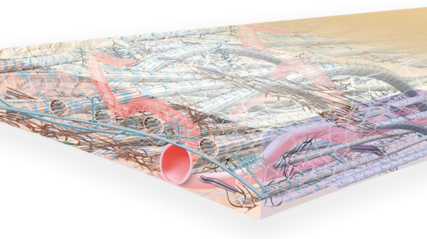 CeraOss® HYA ist eine Kombination natürlicher Rinderspongiosa und Natriumhyaluronat, einem Salz der Hyaluronsäure. Der bovine Knochen (CeraOss®) ist der Knochenstruktur des Menschen sehr ähnlich. Er bietet durch die miteinander verbundenen Mikro- und Makroporen sowie aufgrund einer rauen Oberfläche ein osteokonduktives Leitgerüst für das Einwachsen von Zellen und Blutgefäßen zur Bildung der neuen Knochenmatrix [1-3]. Rinderknochen wird nur oberflächlich resorbiert, was z. B. bei der Unterstützung des Weichgewebes im ästhetischen Bereich [4,7] und der Minimierung des Volumenverlusts in Kombination mit autologem Knochen oder Allotransplantaten von Vorteil ist [8]. In Verbindung mit Natriumhyaluronat wird nach der Hydratation eine zusammenhängende Masse mit formbarer Konsistenz („Sticky Bone“) gebildet, wodurch die Anwendbarkeit erleichtert und das chirurgische Verfahren beschleunigt wird. Bei einer Umfrage von mehr als einhundert Klinikern gaben 78,5 % der Teilnehmer an, dass sich das Knochenersatzmaterial mit Hyaluronat im Vergleich zum Rinderknochen ohne das Biopolymer leichter beziehungsweise wesentlich leichter applizieren lässt [9,10]. Hyaluronsäure wird darüber hinaus auch mit biologischen Vorteilen in Verbindung gebracht, darunter eine pro-angiogene Wirkung [11], eine sehr gute Proliferation und Migrationsaktivität von Osteoblasten [12] sowie eine hohe Knochenbildung bei der Periimplantitis-Therapie [13]. Natriumhyaluronat wird biotechnologisch mittels Fermentation hergestellt. Es ist dadurch biokompatibel, nicht immunogen und durch enzymatischen Abbau natürlich resorbierbar, was durch histologische Kontrollen nach der Implantation bestätigt wird [14].