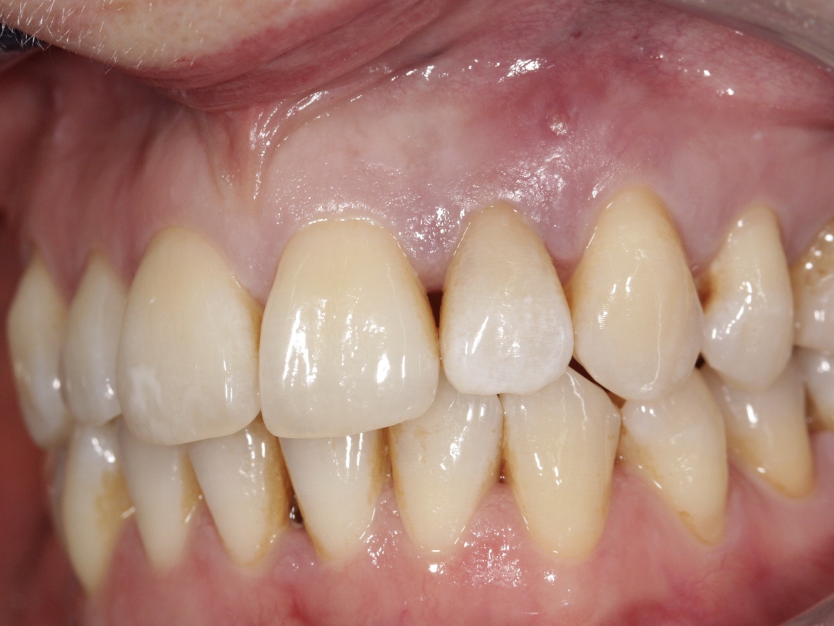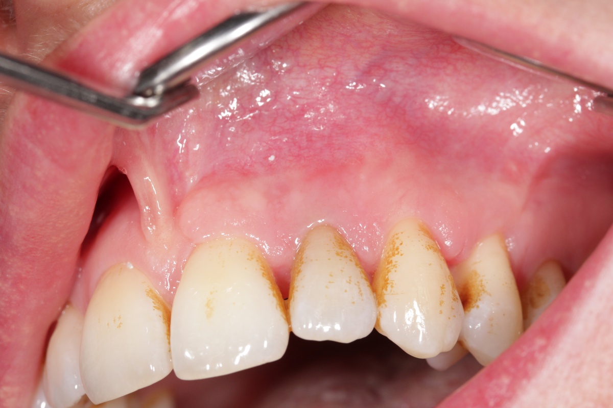 Bei der Kontrolle zwei Monate später war die Patientin vollkommen beschwerdefrei und die Fistelung ausgeheilt. Lediglich die Verfärbungen in Folge der unterstützenden chemischen Reinigung mit einem chlorhexidinhaltigen Präparat empfand die Patientin als ästhetisch störend.