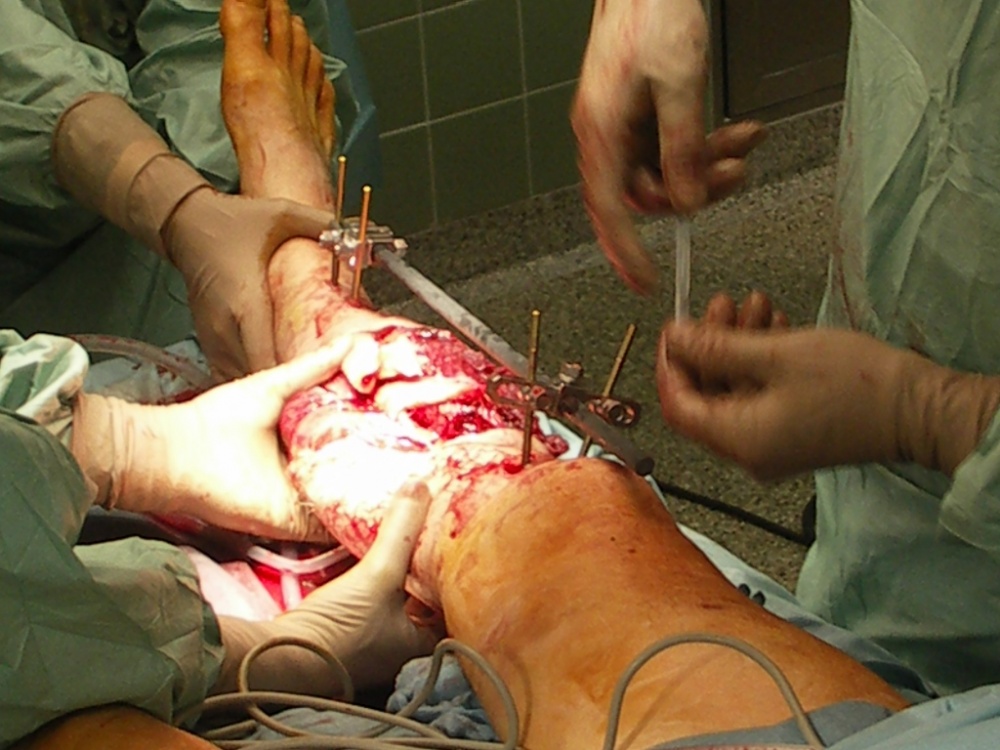 Abb. 5: Stabilisierung mittels Fixateur externe zur Primärversorgung