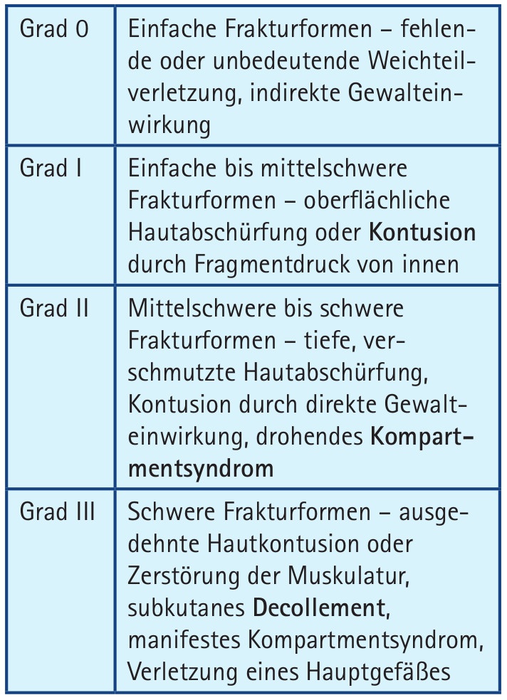Tab. 1: Klassifikation geschlossener Frakturen nach Oestern und Tischerne (20)