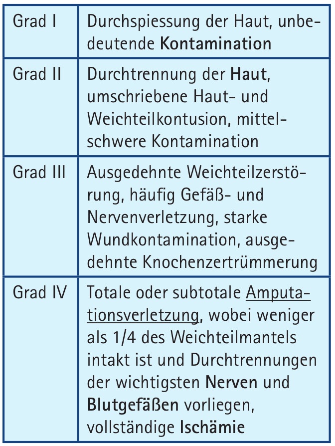 Tab. 2: Klassifikation offener frakturen nach Gustilo und Anderson (20)
