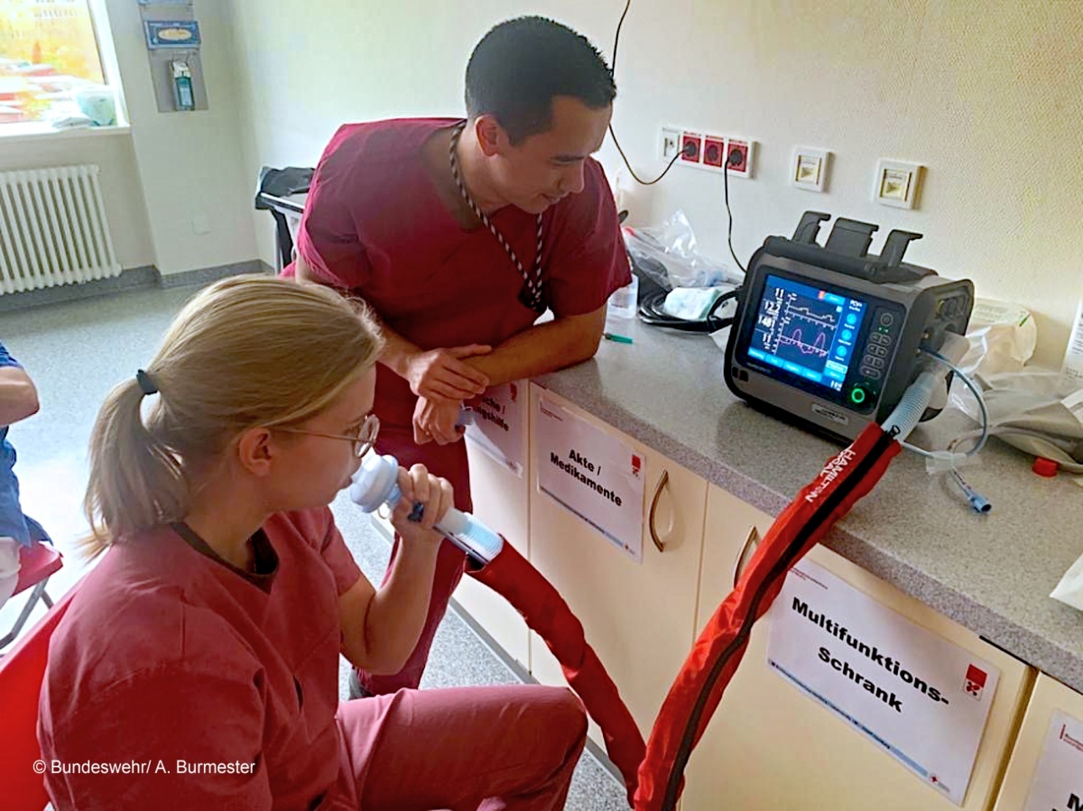 Die Entwicklung der COVID-19-Pandemie in Europa hat insbesondere in Italien, Spanien und Frankreich zu einer massiven Überlastung des intensivmedizinisch spezialisierten Fachpersonals geführt. Vor diesem Hintergrund haben wir am Bundeswehrkrankenhaus (BwKrhs) Hamburg ein Ausbildungscurriculum, das zur Befähigung von Nicht-Intensivmedizinern zur vorübergehenden Wahrnehmung intensivmedizinischer Aufgaben im Einsatz vorgesehen war, in modifizierter Form zur Fortbildung von Ärztinnen und Ärzten genutzt, um für ein Worst-Case-Szenario eine Rückfallposition zu schaffen. Hierüber wird im Folgenden ein erster Zwischenbericht abgegeben.