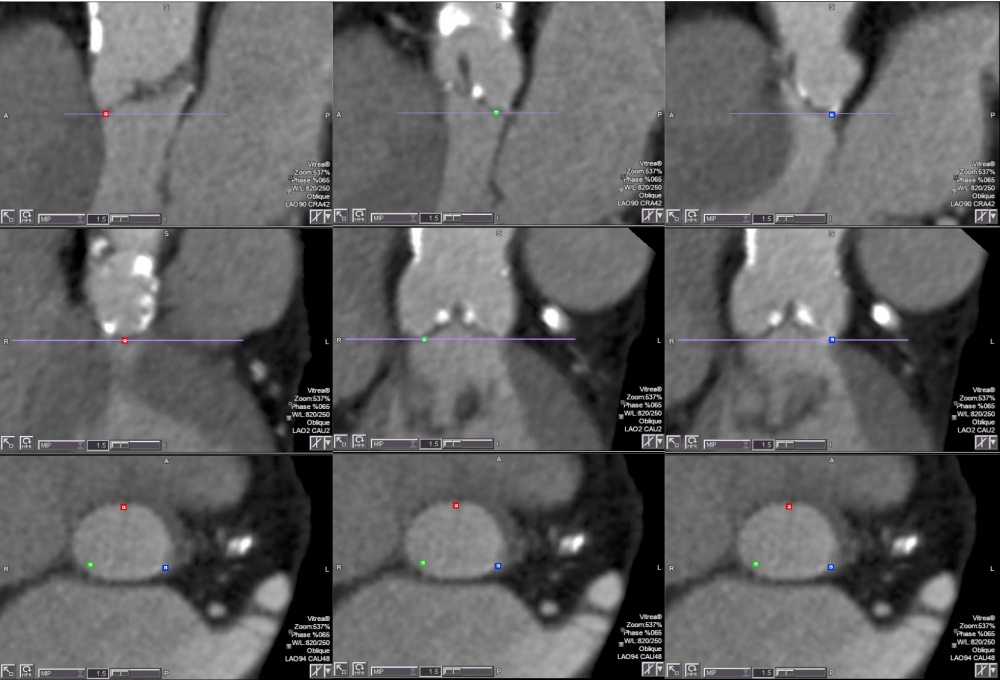- Lehmkuhl L, Foldyna B, Von Aspern K et al.: Inter-individual variance and cardiac cycle dependency of aortic root dimensions and shape as assessed by ECG-gated multi-slice com- puted tomography in patients with severe aortic stenosis prior to transcatheter aortic valve implantation: is it crucial for correct sizing? Int J Cardiovasc Imaging 2013; 29:693-703.