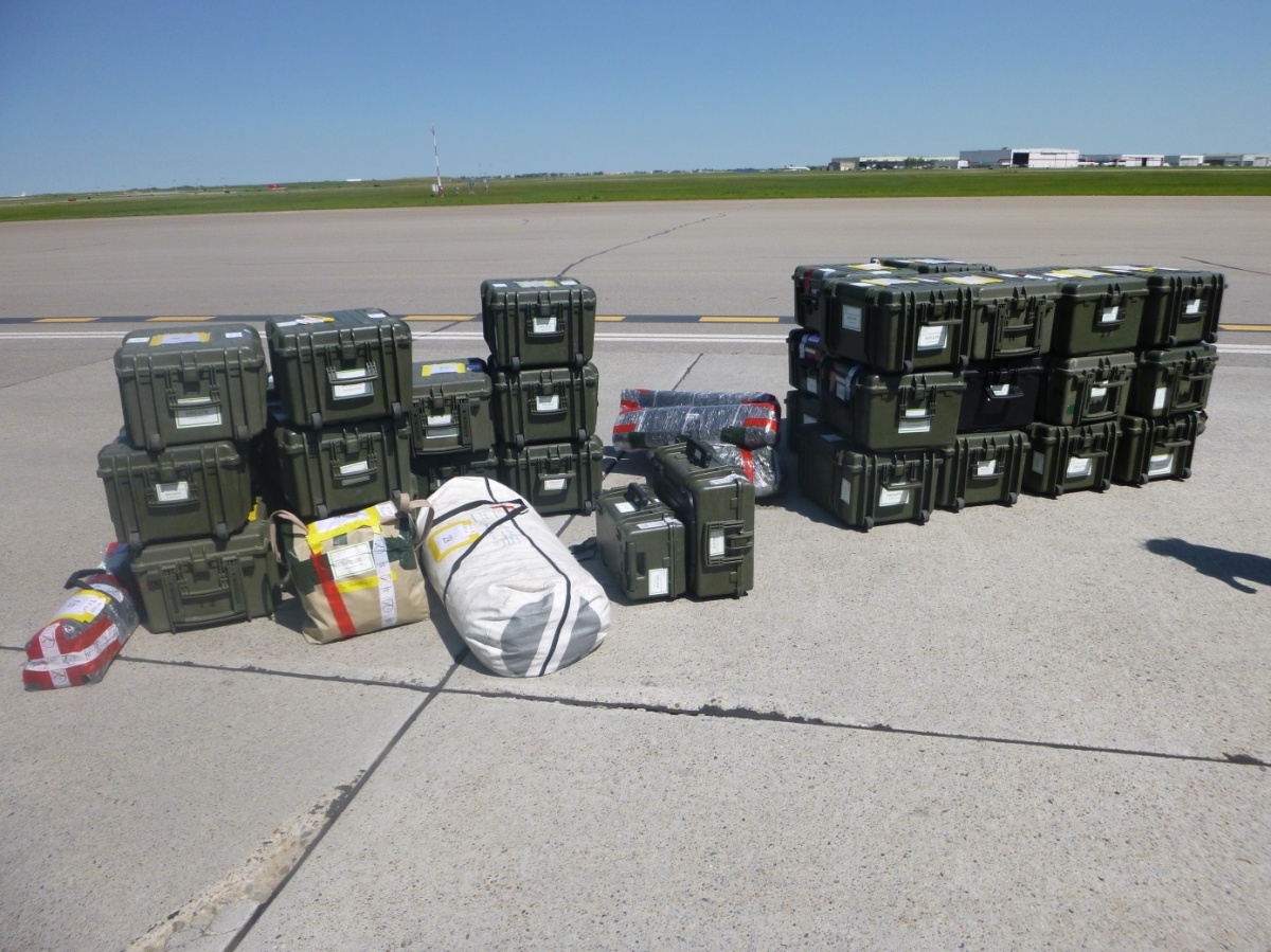 Die Rollkoffer beinhalten persönliche Schutzausrüstung, die B-Probenahme-Ausstattung, eine aufblasbare
