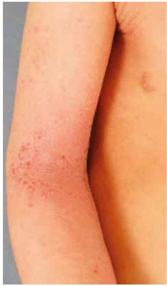 Abb. 2: Impetiginisation mitgelben Krusten durch S. aureus bei atopischem Ekzem.