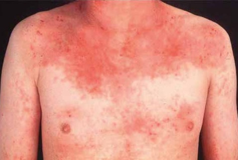 Abb. 3: „Head-Neck-Form“ desatopischen Ekzems mit Nachweis von Malassezia furfur.