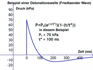 Durch die exotherme Reaktion einer chemischen Substanz während einer Explosion kommt es proportional zur Umsetzung der Chemikalie zu einer Energiefreisetzung, welche sich idealtypisch in Form einer longitudinalen, in Ausbreitungsrichtung schwingenden Stresswelle (ähnlich einer Schallwelle) radiär vom Epizentrum ausbreitet. Diese sich anfänglich mit sehr hoher Geschwindigkeit ausbreitende Druckwelle zeichnet sich durch eine extrem rasche Intensitätszu- und -abnahme aus (Friedlander Wave, Abbildung 1); die Geschwindigkeit kann bei modernen Sprengstoffen im Zentrum der Explosion bis zu 9 000 m/sec betragen [9]. Die bei den Anschlägen auf unsere Patienten eingesetzten Sprengstoffe waren überwiegend „home-made explosives“ (HME) mit Explosionsgeschwindigkeiten zwischen 2 500 m/s bis 5 000 m/s (persönliche Mitteilung an den Autor durch Auswertepersonal der Anschläge). Mit einem primären BLI ist auf Grund der raschen Intensitätsabnahme der Druckwelle deshalb regelhaft in der Nähe eines Explosionsepizentrums zu rechnen. Insbesondere in geschlossenen Räumen und in Abhängigkeit von der Geländestruktur (vor allem bei urbanem Charakter oder im Gebirge) entstehen durch Streuungen, Reverberationen und Resonanzen wesentlich komplexere Schallmuster [9], welche die Vorhersage der Intensität der Stresswelle an einem bestimmten Wirkort sehr erschweren bis unmöglich machen.