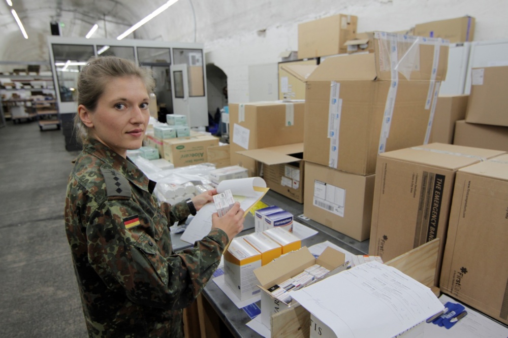 mit den kaufmännischen Erfordernissen der ­SanMatLogistik. Die Anforderungen der Truppe werden verarbeitet, die Ware wird bei der pharmazeutischen Industrie gekauft, der Nachweis wird geführt und Rechnungen werden zur Zahlung vorbereitet. Am wichtigsten ist es, dass in diesem Bereich die Bevorratung gesteuert und den Bedürfnissen des Versorgungsbereiches angepasst wird.