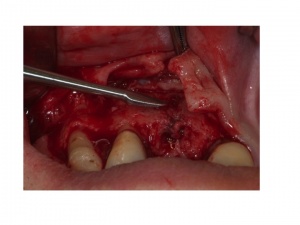 - Gewinnung von autologem Knochen (Linea obliqua, Kinn, Chips),