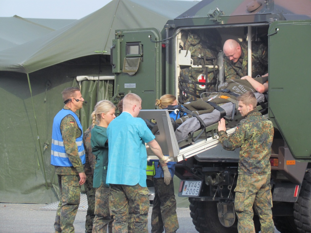 Auch in diesem Jahr erfreute sich die Informationslehrübung des Sanitätsdienstes wieder großer Beliebtheit. Unter den über 500 Besuchern waren u. a. der Verteidigungsausschuss des Deutschen Bundestages, Militärattachés, der stellvertretende Inspekteur des französischen Sanitätsdienstes, hochrangige militärische Führer, der nationale Generalstabslehrgang der Führungsakademie sowie Vertreter aus Wirtschaft und von Hilfsorganisationen. Vielfaches positives Feedback unterstrich auch in diesem Jahr wieder den Erfolg und die Notwendigkeit der Veranstaltung.