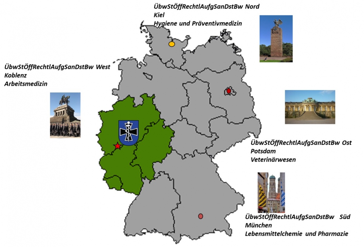 Europe mit Kommando Sanitätsdienst Bundeswehr, Zentralinstitut Sanitätsdienst der Bundeswehr Koblenz und ÜbwStÖffRechtlAufgSanDstBw