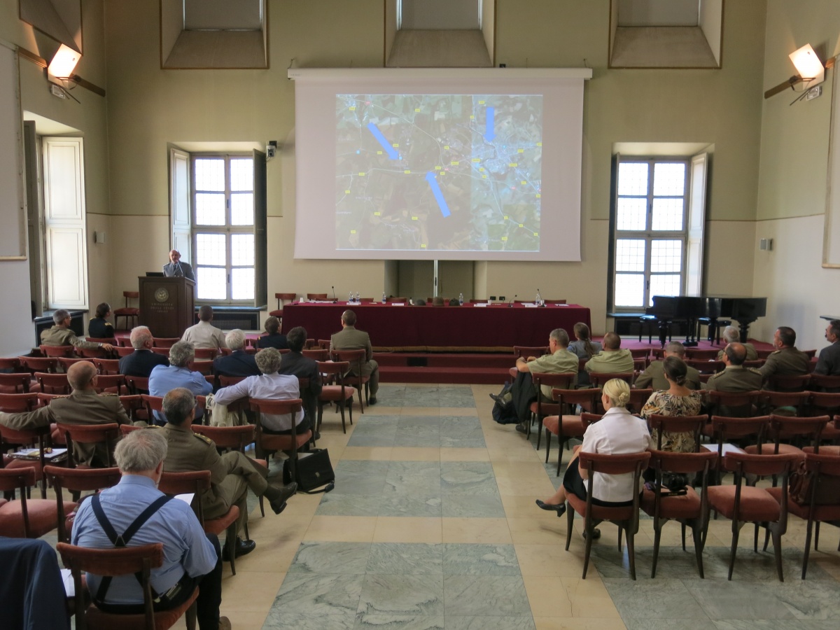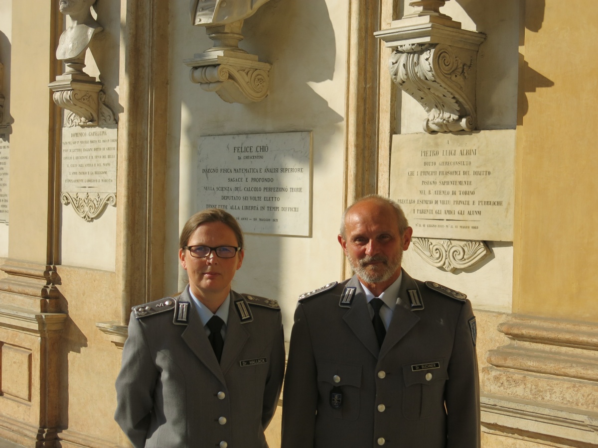 Der wissenschaftliche Teil der Veranstaltung begann mit zwei Vorträgen des französischen Vétérinaire en Chef, Colonel Emmanuel Dumas. Er stellte zunächst die große Tradition des französischen Veterinärwesens seit 1769 vor und berichtete von bei Kriegsbeginn 91 Kavallerieregimentern, jedes mit 800 – 1200 Pferden, für deren Versorgung jeweils 3 Veterinäre zur Verfügung standen. Nach Mobilisierung der Armee dienten insgesamt 3.200 französischen Veterinäroffiziere für die Behandlung von ca. 6,4 Millionen Tieren. In einem zweiten Vortrag befasste sich Colonel Dumas mit den Verlustzahlen unter den französischen Veterinären. Anhand von ausgewerteten Personalunterlagen gelang es, 135 umgekommene Veterinäroffiziere zu ermitteln, die meisten Angehörige von Artillerieregimentern, die entweder im Kampf (25 %), durch Infektionskrankheiten (40 %) oder durch Unfälle (10 %), wie z. B. Sturz vom Pferd, gefallen sind. Mehrere Vorträge der italienischen Gastgeber befassten sich mit der Struktur des italienischen Veterinärwesens im Krieg, dem schwierigen Einsatz von Mauleseln an der Alpenfront, der Ausbildung und dem Einsatz von militärischen Hufschmieden und der Geschichte der Veterinärmedizinischen Fakultät der Universität Turin. Es folgten Beiträge über den Veterinärdienst der belgischen, portugiesischen und serbischen Armee, letzterer gehalten durch den Leiter des serbischen Veterinärdienstes, Major Milentijevic. Die amerikanische Veterinäroffizierin Major Gerardo stellte das „US Army Veterinary Corps in WW I“ vor. Einen Überblick über die Entwicklung des deutschen Veterinärkorps im Krieg gab der Leitende Veterinär des Sanitätsdienstes der Bundeswehr, Oberstveterinär Dr. Buchner. Er unterstrich ebenso die hohe Bedeutung der Verwendung von Pferden für die militärischen Operationen. Insgesamt wird die Zahl der auf deutscher Seite zum Einsatz gekommenen Huftiere auf ca. 10 Millionen geschätzt, von denen ca. 1 Million Tiere umgekommen sind. Im Jahre 1914 noch kaum strukturiert, standen gegen Ende des Krieges für deren veterinärmedizinische Versorgung insgesamt 478 planmäßige Pferdelazarette bereit. Auch die Zahl der Veterinäre hatte sich von 766 aktiven bei Kriegsbeginn deutlich vergrößert: Von insgesamt 7.200 Veterinären im Reich nahmen bis zu 5.300, mithin 75 %, am Krieg teil. 241 Veterinäre fielen, erlagen Kriegswunden oder verstarben an Infektionen. Die größten Herausforderungen in der Pferdebehandlung bestanden in der anfangs unzureichenden Vorbereitung auf die Verwundungen von Tieren und in der Behandlung von Erkrankungen epizoonotischer Art wie Rotz oder Scabies. Dr. Buchner veranschaulichte seine Präsentation durch einen eindrucksvollen Original Film aus dem Ersten Weltkrieg über das Sächsische Pferdelazarett 234 in Donchery bei Sedan.