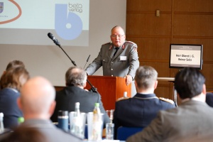 Frau Heike Lange, Geschäftsführung des BETA Verlags, begrüßte traditionell die über 100 Teilnehmer des Seminars und leitete zu einem besonderen Highlight gleich zu Beginn über. Sie begrüßte den neuen Inspekteur des Sanitätsdienstes, Herrn Generaloberstabsarzt Dr. Ulrich Baumgärtner.