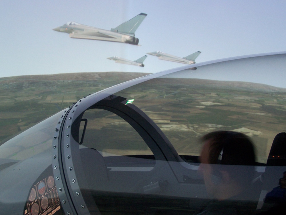 Kernelement der Phase III sind die Simulatorflüge am Fliegerpsychologischen System Flächenflugzeuge (FPS/F). Es besteht im Wesentlichen aus vier geschlossenen Cockpits, zwei Steuerkonsolen, zwei Debriefingkonsolen, ein Mission-Editor-Station und einer Briefinganlage. Die Cockpits (s. Abb. 2 und 3) verfügen über ein sphärisches 5-Kanal-Sichtsystem mit einem Blickfeld von 200° horizontal und 45° vertikal. Das Sichtsystem erlaubt dadurch eine realistische dreidimensionale Darstellung der Szenarien. Zudem können verschiedene Tageszeiten, Sicht- und Wetterverhältnisse simuliert werden. Die Flugsteuerung erfolgt mit Hilfe des Center Stick (optional: Side Stick; inklusive Trim Buttons [optional]), der Seitenruderpedale (inklusive Fußbremsen), des Schubhebels (inklusive Air Brakes, Mike Button) und Schaltern für Fahrwerk und Landeklappen.[5]