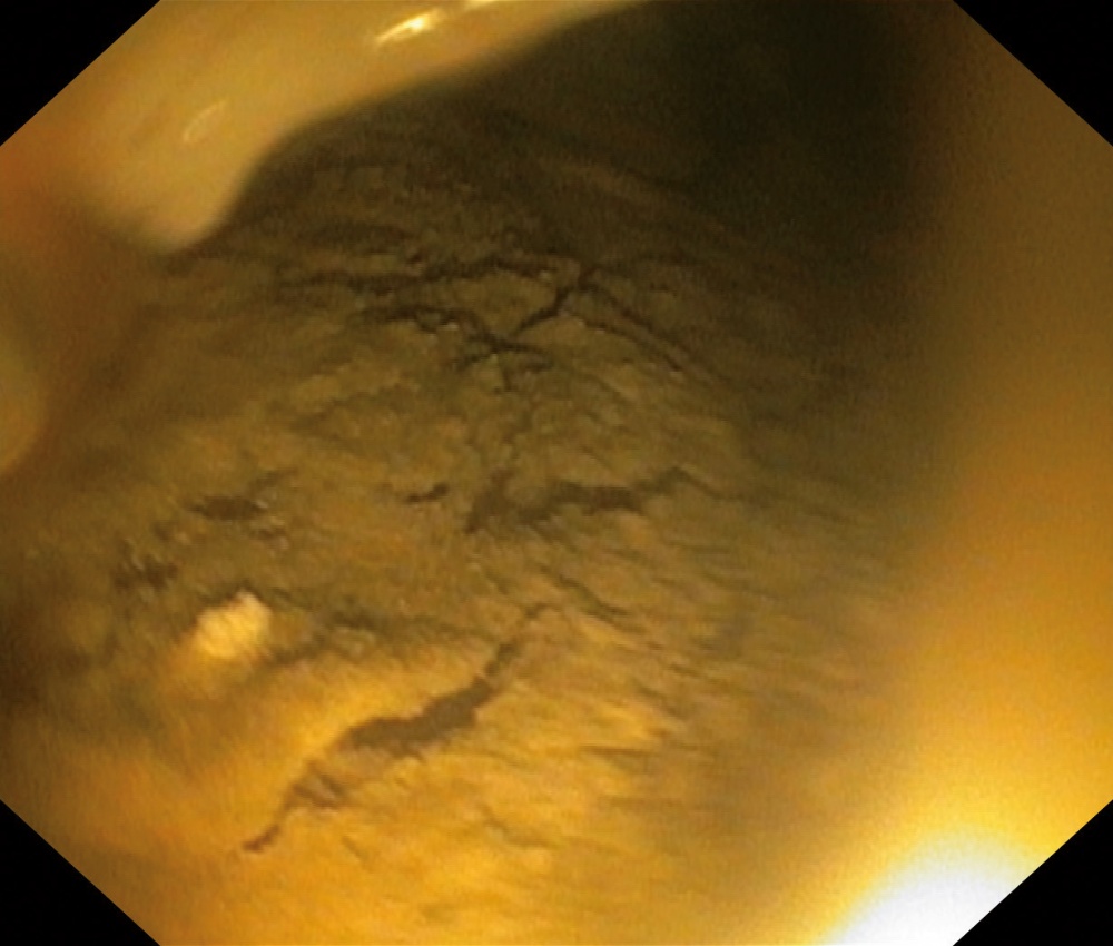 Der Patient konnte nach einem adäquaten Überwachungszeitraum kreislauf- und hämoglobinstabil auf eine periphere Station verlegt werden. Eine zeitnahe endoskopische Kontrolle war aufgrund des stabilen Hämoglobingehaltes in den ersten Tagen des stationären Aufenthaltes nicht notwendig. Nach 7 Tagen erfolgte die erste geplante Nachuntersuchung, die keine neuen Blutungsstigmata und eine Abheilung der Läsionen zeigte (Abbildung 3).