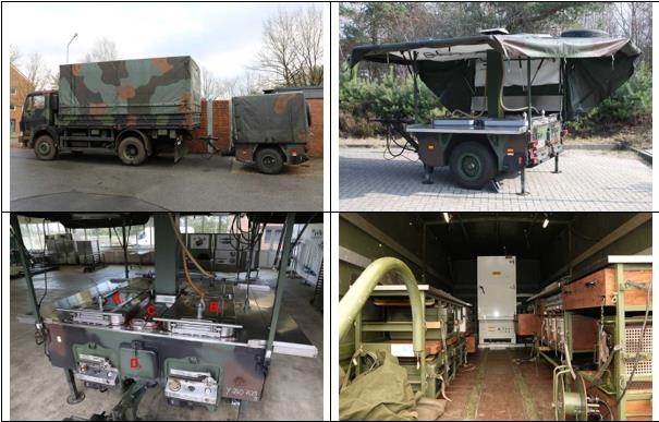 - verladbar auf LKW/Anhänger durch genormte Schnittstellen (gem. Leitfaden für die standardisierte Befestigung von Ladung auf LKW der Bundeswehr),