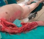 Im Gesichtsbereich ergänzt die Plastische Chirurgie die Abteilung für Hals-,Nasen,-Ohrenheilkunde (Leitender Arzt: FTArzt Dr. Herbert Eichwald). Hier übernimmt die Plastische Chirurgie meist die Defektdeckung nach Tumor-Operationen im Gesicht. Abb. 3 zeigt eine Patientin mit Augeninnenwinkelbasaliom, die zur Defektdeckung mit einem Wangenvorschublappenversorgt wurde. In Zusammenarbeit mit der Viszeralchirurgie erfolgt die Versorgung größerer Bauchwandhernien und Narbenbrüche und Verwendung von Bauchwandkulissenplastiken oder muskulo-faszialen Lappenplastiken (Abb. 4). Zusammen mit Gefäßchirurgie werden insbesondere Defekte nach Protheseninfekt oder Wundheilungsstörungen mit freiliegenden Prothesen behandelt. Desweiteren werden onkologische Operationen in Kooperation mit dem Zentrum für Muskuloskeletale Tumorchirurgie der Charité (Leiter: Dr. Ingo Melcher) und mit der Klinik für Gynäkologie mit offener Tumorchirurgie der Charité (Direktor: Prof. Dr. Werner Lichtenegger) durchgeführt.javascript:zeigeBild(3)