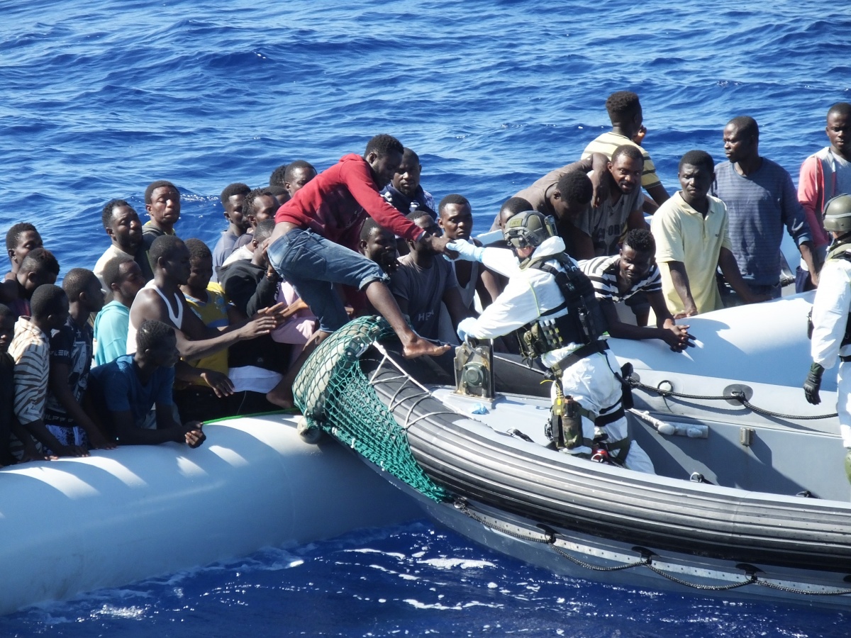 Seit Anfang Mai 2015 beteiligt sich die Deutsche Marine an der Mission EUNAVFOR MED Operation Sophia. Primär besteht der Auftrag des Einsatzes inzwischen darin, kriminelle Schleusernetzwerke aufzuklären, den Menschenschmuggel zu verhindern und zum Kapazitätsaufbau der libysche Küstenwache bzw. Marine beizutragen. Die Schiffe der Mission sind derzeit im Seeraum zwischen der italienischen und der libyschen Küste stationiert – außerhalb der libyschen Hoheitsgewässer. Für weitergehende Maßnahmen, wie z. B. Maßnahmen gegen von Schleppern genutzte Boote und Einrichtungen auch auf fremdem Territorium oder in nationalen Hoheitsgewässern, fehlen bisher UN-Beschlüsse und nationale Zustimmungen. Die Größe des Operationsraumes (AOO – Area Of Operation) entspricht der Größe Deutschlands. Flüchtlinge aus Seenot zu retten, ist somit nicht der Hauptauftrag der Mission, ist aber Verpflichtung für seegehende Einheiten gemäß der United Nations Convention on the Law of the Sea und der Convention for the Safety of Life at Sea (SOLAS-Abkommen). Derzeit befindet sich der Einsatzgruppenversorger „Frankfurt am Main“ im Einsatz, Boardingteams auch ausländischer Partnernationen befinden sich regelhaft an Bord. Diese können Boote anhalten, kontrollieren und ggf. verdächtige Personen festnehmen. Zudem ist die Europäische Agentur für die Grenz- und Küstenwache Frontex im Mittelmeer mit ihrer Mission “Triton” vertreten. Die Hauptquartiere der EU NAVFOR MED und von Frontex tauschen ihre Informationen miteinander aus und kooperieren direkt in Bezug auf die Seenotrettung, die vom Italienischen Maritime Emergency Center koordiniert wird.
