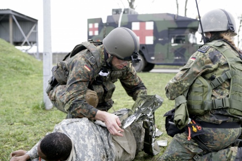 Die sanitätsdienstliche Versorgung im Einsatz ist durch den Grundsatz geprägt, dass die präklinische Behandlung, der qualifizierte Patiententransport und die akute innerklinische Versorgung, ergebnisgleich zu einer inländischen, nicht-einsatz assoziierten Behandlung, führen soll. Dabei sind die etablierten Versorgungsstufen (Role 1-4) entsprechend des medizinisch-zeitlichen Fortgangs der Patientenbehandlung gestaffelt [7]. [1]