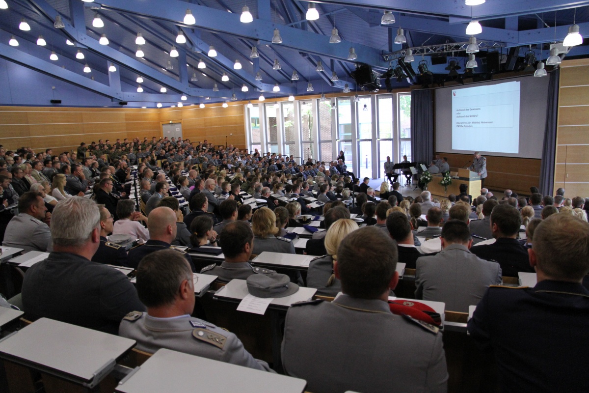 In ihrer Begrüßungsrede erinnerte die Kommandeurin auch an die vor genau 5 Jahren von Generalarzt Dr. Stephan Schoeps veranlasste Benennung des Auditorium Maximum der Sanitätsakademie nach Hans Scholl, einem zentralen Ereignis im Traditionsverständnis der Sanitätsakademie der Bundeswehr. Sie würdigte die Widerstandskämpfer der Weißen Rose: „Sie haben ihr Leben eingesetzt in ihrem Protest gegen die Willkür eines rassistischen Gewaltre­gimes, sie haben ihr Leben eingesetzt gegen einen verbrecherischen Krieg und sie haben ihr Leben eingesetzt für ein besseres und vor allem für ein demokratisch legitimiertes föderalistisches Deutschland. Und sie waren die einzige Gruppe im Widerstand, die die unwürdigen Pogrome und die Vernichtung der Juden anklagte.“