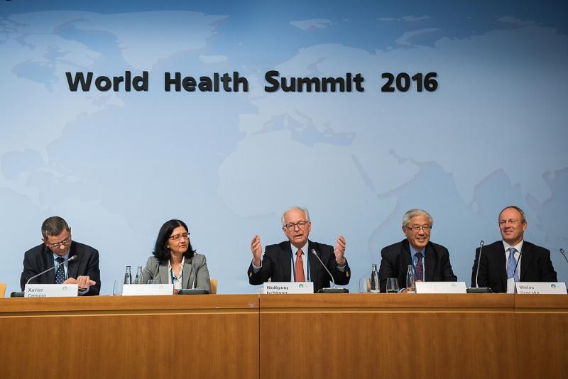 Der Vorsitzende der Münchner Sicherheitskonferenz, Prof. Dr. Ischinger mit Vertretern aus der Wirtschaft, WHO und Akademien, thematisieren sicherheitspolitische Aspekte auf dem World Health Summit 2016 in Berlin; www.worldhealthsummit.org