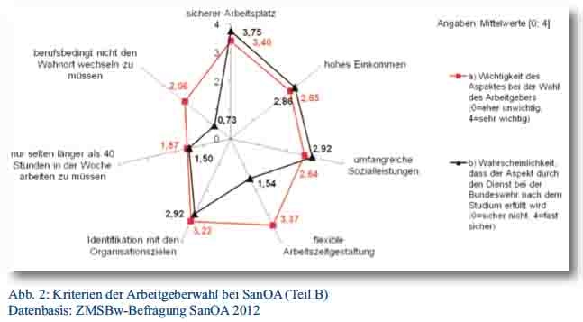 Abb. 2: Kriterien der Arbeitgeberwahl bei SanOA (Teil B) Datenbasis: ZMSBw-Befragung SanOA 2012