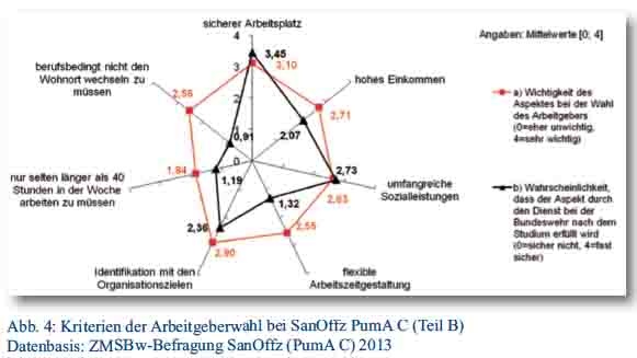 Abb. 4: Kriterien der Arbeitgeberwahl bei SanOffz PumA C (Teil B) Datenbasis: ZMSBw-Befragung SanOffz (PumA C) 2013
