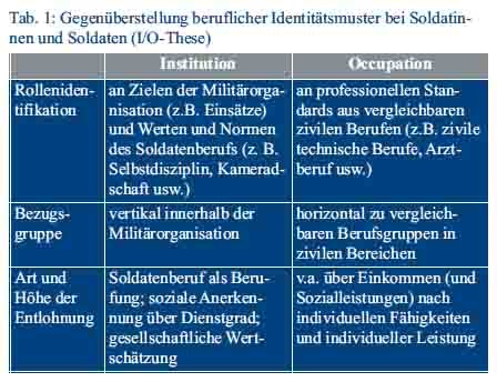 Tab. 1: Gegenüberstellung beruflicher Identitätsmuster bei Soldatinnen und Soldaten (I/O-These)