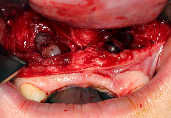 Ist eine Implantation aufgrund mangelnden Knochenangebotes primär nicht durchführbar, ist durch prä- oder periimplantäre augmentative Maßnahmen mit Knochenersatzmaterial oder autologem Knochen eine suffiziente Gestaltung des Implantatbettes durchzuführen. Das freie Beckenkammtransplantat ist für ausgedehntere Augmentationen nach wie vor der Goldstandard. Die Sicherstellung adäquater periimplantärer Weichgewebsverhältnisse dient der Prävention einer Periimplantitis.