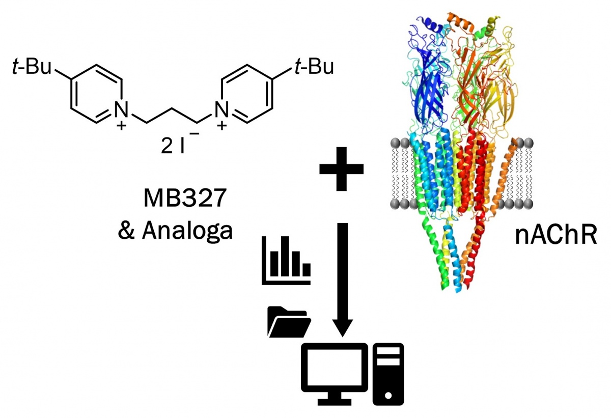 Als sehr vielversprechende Therapieform erscheint des-halb eine direkte pharmakologische Intervention am -desensitisierten nAChR, um diesen wieder in eine funktionale Form zu überführen. In funktionalen Messungen, durchgeführt von Niessen et al. [1], auf einer sogenannten SURFE2R -Plattform 1 indirekte elektrophysiologische Messungen, erwies sich dieses bereits als möglich. MB327, eine 4-tert-Butyl-substitutierte Bispyridiniumverbindung, zeigte hier die Fähigkeit, den desensitisierten nAChR wiederherzustellen. Der therapeutische Effekt der Bispyridiniumverbindung konnte außerdem bereits in ex-vivo, in-vitro sowie in-vivo Studien demonstriert werden [2, 3]. Da vorangegangene Studien zeigten, dass MB327 nur schwach an die orthosterische, d. h. Agonisten-Bin-dungsstelle, bindet, scheint dessen funktionelle Aktivität über eine allosterische Modulation am nAChR vermittelt zu werden. Im Rahmen eines kooperativen Forschungs-projekts (Abbildung 1 und 2) einer Forschungsgruppe um Prof. Dr. Klaus T. Wanner, Lehrstuhl für pharmazeutische Chemie der Ludwig-Maximilians-Universität München, mit der Arbeitsgruppe von Oberfeldapotheker Dr. Karin Niessen, Institut für Pharmakologie und Toxikologie der Bundeswehr -(InstPharmToxBw) in München, gelang es erstmals, die MB327-Bindestelle am nAChR zu charakterisieren.