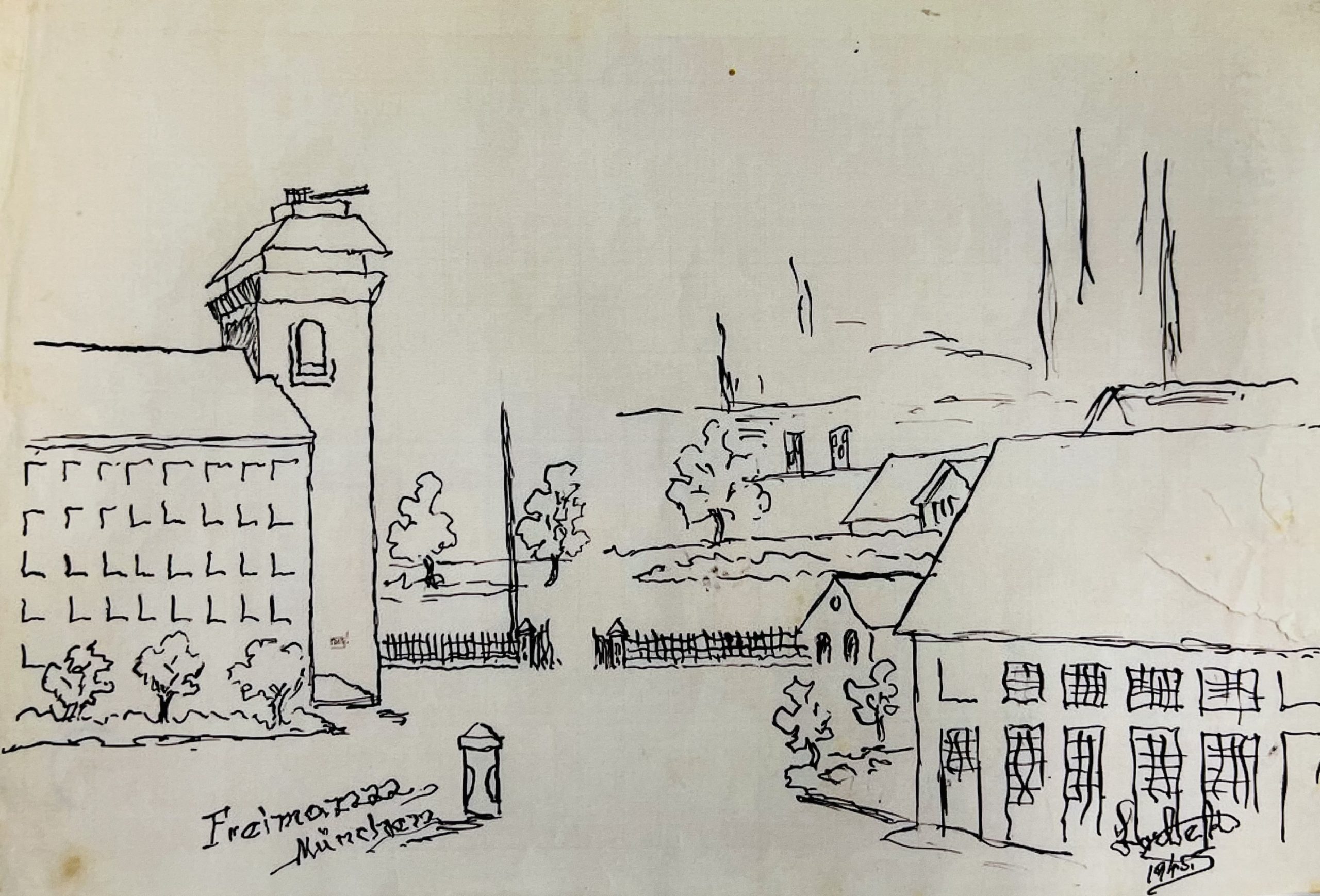 So gab er zu Protokoll: „Die Unterkünfte waren kalt und boten lediglich Etagenpritschen ohne Strohsäcke. Des Weiteren waren die Fenster mit Gittern versehen.“. Herrn Milan LORBEKs Zeichnungen geben einen Eindruck davon, wie der Kasernenhof zu dieser Zeit aussah; sie entstanden etwa 1945, als er dort als Flüchtling im Durchgangslager der United Nations Relief and Rehabilitation Administration (UNRRA) untergebracht war.