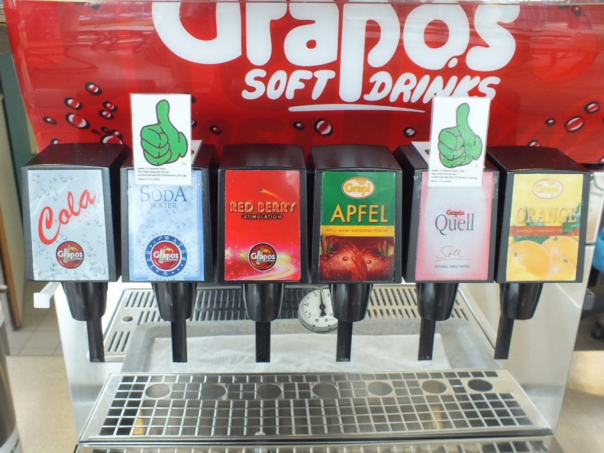 - Anzahl und Art der Getränke, wobei Getränke nach gesüßt (Erfrischungsgetränke Orange, Apfel, Red Berry und Diätcola sowie mit Wasser verdünnte Erfrischungsgetränke) und ungesüßt unterschieden wurden; Quell- und Sodawasser wurde unter Wasser zusammengefasst;