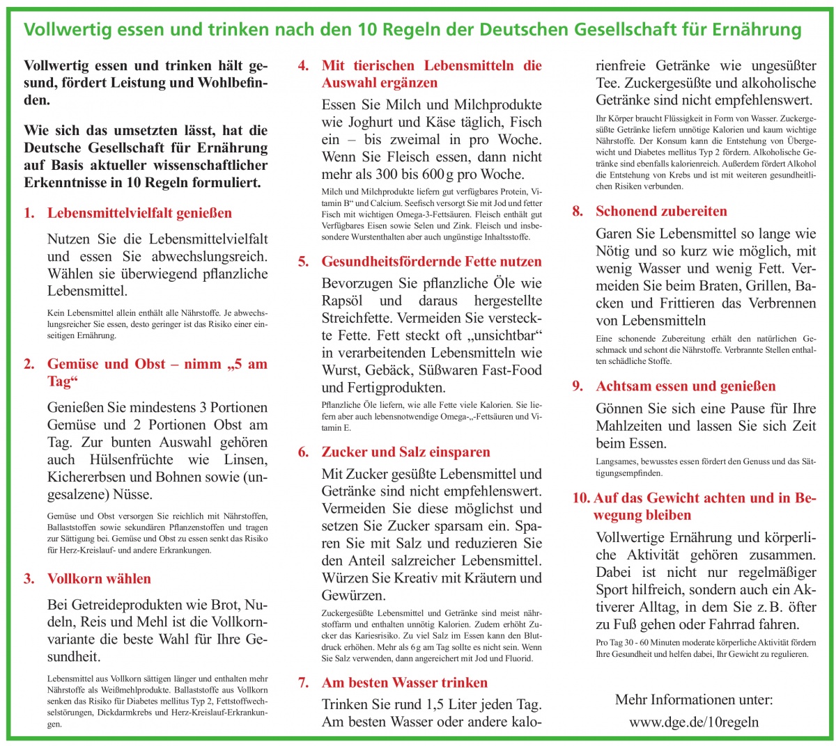 Auf der Basis allgemein anerkannter Empfehlungen für eine gesundheitsförderliche und nachhaltige Ernährung (z. B. 10 Regeln der Deutschen Gesellschaft für Ernährung, https://www.dge.de/ernaehrungspraxis/vollwertige-ernaehrung/10-regeln–der-dge/) und unter Berücksichtigung der bekannten Abweichungen der Ernährung von Erwachsenen von lebensmittelbasierten Ernährungsempfehlungen [2] sollten folgende Komponenten in eine gewünschte Richtung verändert werden: