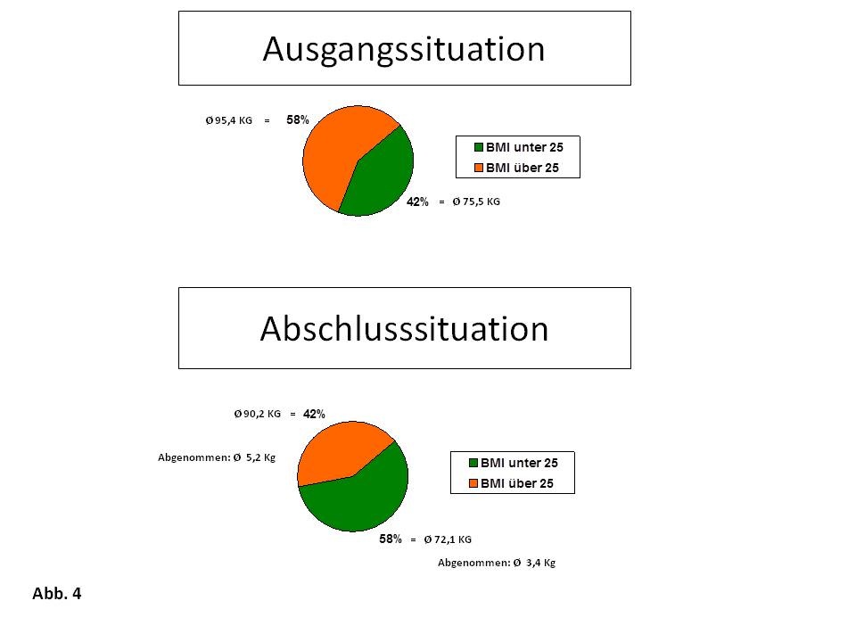 Monatlich wurden Kontrollen von Gewicht, Taillenumfang und BMI durchgeführt.