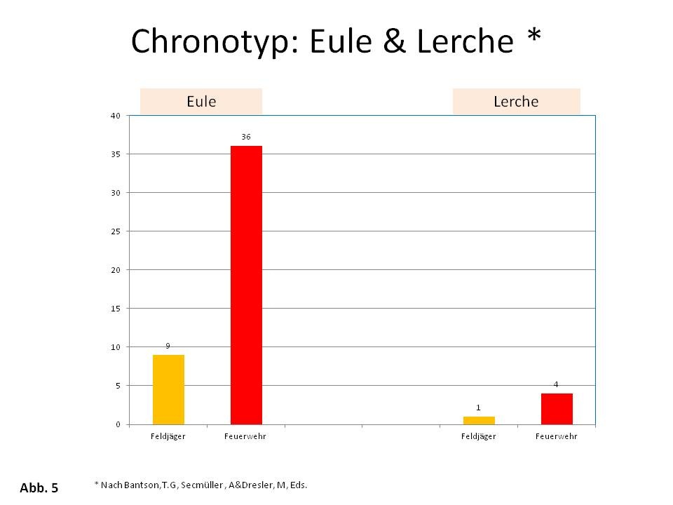 Bei Eingangsuntersuchungen des Feuerwehr- und Feldjägerkollektivs konnte festgestellt werden, dass die überwiegende Anzahl des Schicht-Typs „Eule“(Leistungshoch in den späten Abendstunden) gesundheitlich belastet im Sinne eines metabolischen Syndroms war. Durch o. g. präventive kardio-protektive Maßnahmen der Gesundheitsvorsorge konnten Risikofaktoren minimiert und die körperliche Leistungsfähigkeit nach den Kriterien des G 26.3 erkennbar verbessert werden (Abb. 4, 6, 7, 8). Eingangs- und Abschlussuntersuchungen des Feuerwehr- und Feldjägerkollektivs zeigten keine signifikanten abweichenden Untersuchungsergebnisse, so dass die Ergebnisse zusammen dargestellt werden konnten.