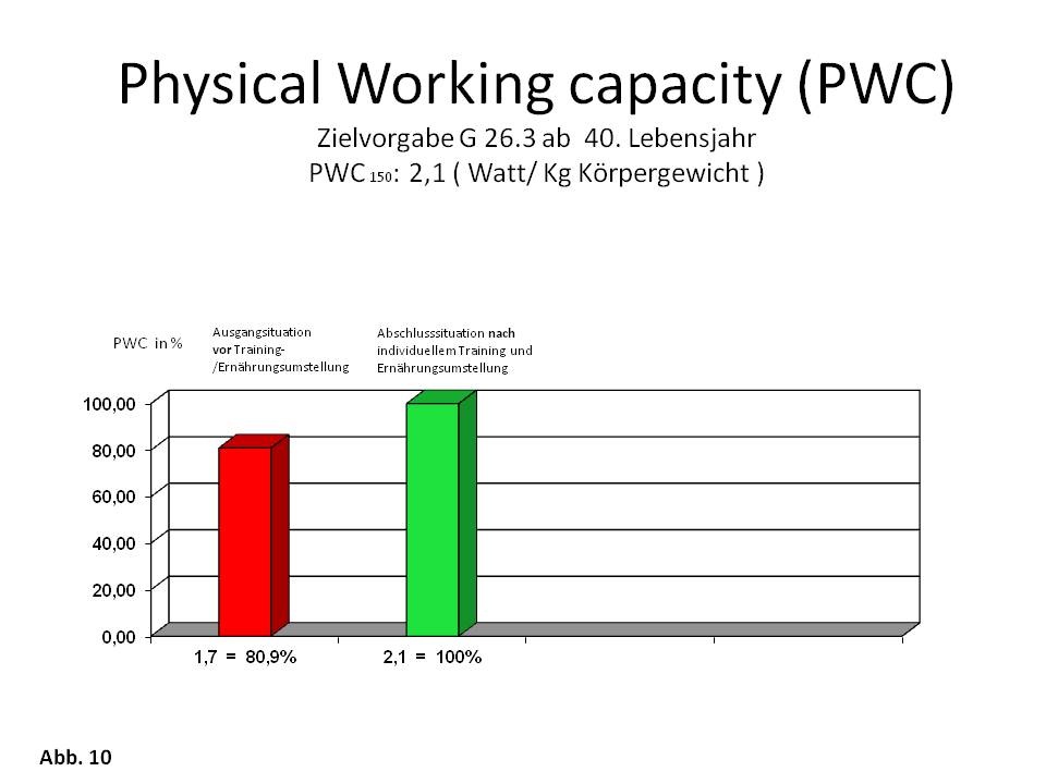 Im Betreuungsbereich fiel in den letzten Jahren eine Verschlechterung der Leistungsergebnisse (Physical Working Capacity (PWC))bei der Vorsorge nach G 26.3 (schwerer Atemschutz) bei Feuerwehrbediensteten der Bundeswehr auf. Dabei versteht man die in Watt angegebene mechanische Leistung einer Person bei definierter Herzfrequenz. Diese macht Aussagen über das Dauerleistungsvermögen der jeweilig getesteten Person. Eine leistungsbasierte Belastungsuntersuchung ist wesentlicher Bestandteil der sportmedizinischen Diagnostik (Fahrradergometrie). Die diagnostische Methode der Ergometrie hat seit langem Eingang in die praktische Kardiologie gefunden und ist in den letzten Jahren auch weitgehend standardisiert worden (JAEKEL 1994, LE. GALLAIS, 1999, PADILLA, 2000).
