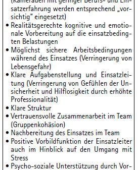 Hierbei soll zukünftig grundsätzlich vor Beginn des ersten Einsatz festgestellt werden, ob die psychische Fitness noch gestärkt werden muss, um mit den besonderen Belastungen des Einsatzes individuell angemessen umgehen zu können, und nach der Rückkehr aus jedem einzelnen Einsatz, ob die Einsatzbelastungen toleriert wurden oder geeignete Maßnahmen zur vollen Wiederherstellung der persönlichen Einsatzbereitschaft eingeleitet werden müssen.