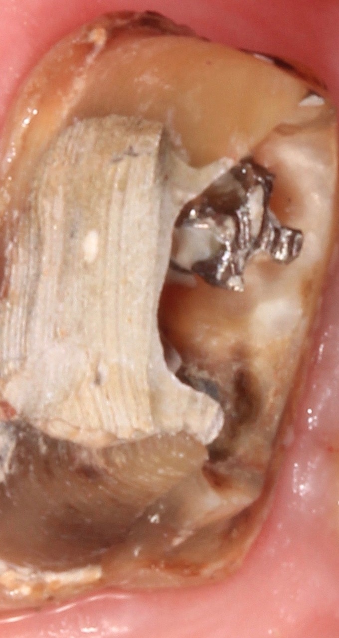 Zum Aufbau tief zerstörter Zähne kommt man nicht immer umhin, zur Verankerung der Aufbaufüllung einen Wurzelstift zu setzen. Neben geschraubten und zementierten Metallstiften können „geklebte“ Glasfaserstifte verwendet werden. Eine mögliche Alternative hierzu, welche sich auch in der Leitlinie „Prognose für wurzelkanalbehandelte Zähne“ der Deutschen Gesellschaft für Zahn-, Mund- und Kieferheilkunde (DGZMK) findet, ist die Verzapfung der plastischen Aufbaufüllung in die koronalen Anteile der Wurzelkanäle. Hierbei wird die Wurzelfüllung mit geeigneten rotierenden Instrumenten im oberen Anteil bis zu zwei Millimeter reduziert, mit einer dünnen Schicht Phosphatzement „markiert“ und anschließend mittels plastischen Aufbaumaterialien wieder verschlossen. Durch diese „Markierung“ wird ein Wiederauffinden der Wurzelkanäle gewährleistet. Die Verzapfung der Aufbaufüllung ermöglicht eine sehr stabile Verankerung im Zahn und es kann häufig auf eine Stiftbohrung, und damit auf eine weitere mechanische Schwächung der Wurzel, verzichtet werden. Sehr gut für dieses Verzapfungsverfahren eignet sich das Bulk-Fill-Material SDR® von Dentsply DeTrey. Durch dessen selbstnivellierende Eigenschaften ist ein vollständiges Ausschwemmen der koronalen Anteile der Wurzelkanäle fast sicher gewährleistet. Zudem besteht die Möglichkeit, das Material bis zu einer Schichtstärke von vier Millimeter bei geringer Polymerisationsschrumpfung zu schichten.