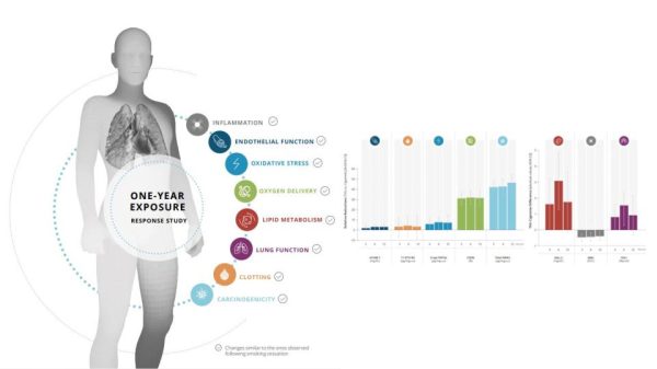 Diese Ergebnisse, die 2018 veröffentlicht wurden, stimmen mit den zuvor veröffentlichten Daten des Herstellers (Philip Morris International) überein. In der Studie heißt es, dass zwar weitere Studien erforderlich sind, um das Ausmaß der Expositionsreduktion zu ermitteln, dass aber die gemessenen Verringerungen „die relevanten Fragen der vermeintlich verringerten Gesundheitsrisiken aufwerfen.“