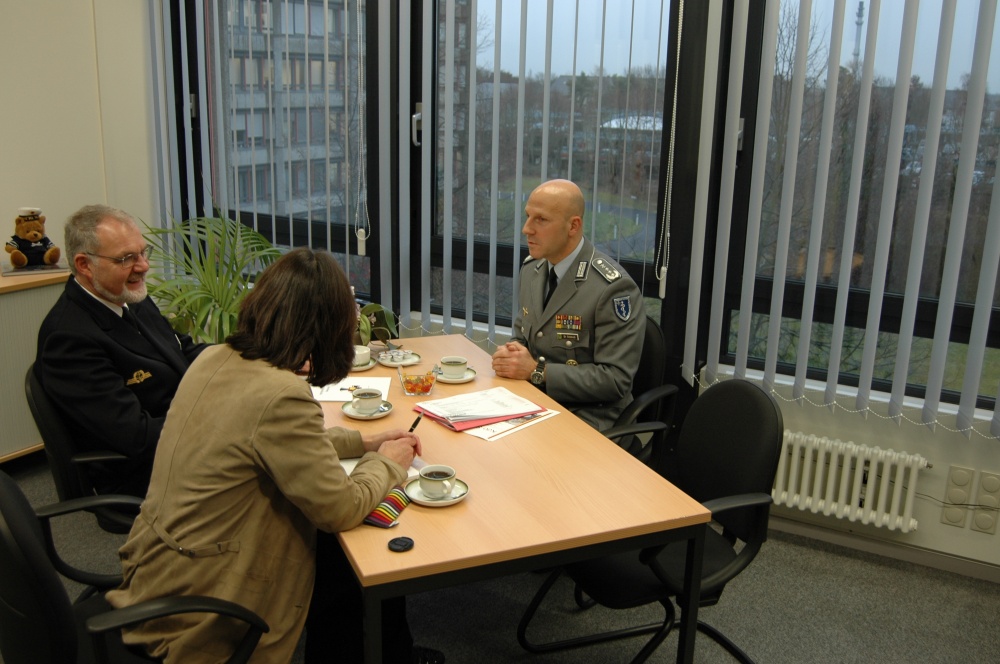 Zum einen findet 14-tägig ein gemeinsamer Jour Fixe mit den Chefs der Stäbe der militärischen Organisationsbereiche statt, in dem der Büroleiter des Generalinspekteurs der Bundeswehr sowie mein Büroleiter über aktuelle Themen und Entwicklungen aus dem BMVg und der Abteilung Führung Streitkräfte berichten aber auch die aktuellen Themen der militärischen Organisationsbereiche aufnehmen.