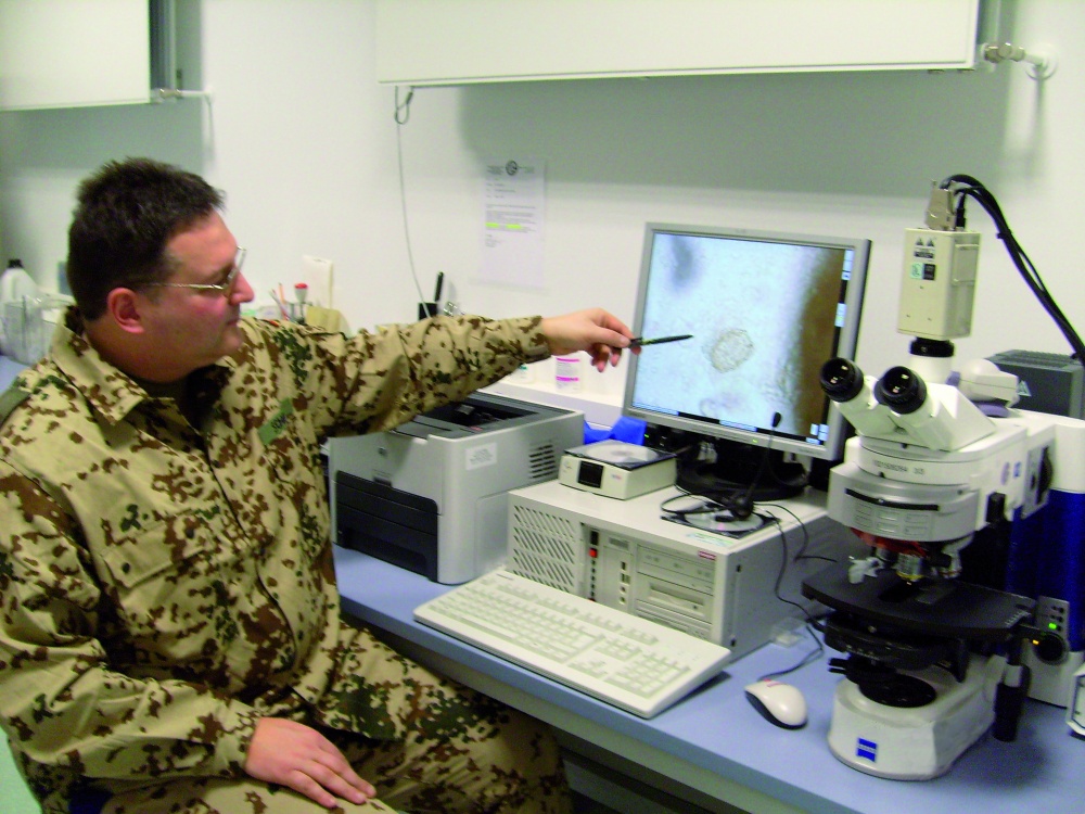 Der Sanitätsdienst der Bundeswehr stellt mikrobiologische Einsatzlaboratorien zur Verfügung, um in den Auslandseinsätzen eine den aktuellen medizinischen Standards entsprechende Diagnostik für alle relevanten Infektionskrankheiten zeitgerecht verfügbar machen.