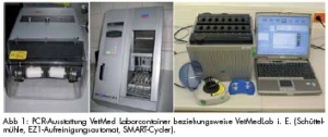Das Spektrum der klassischen Mikrobiologie im Haus beinhaltet knapp 50 kulturelle Verfahren, darunter Norm-, DIN-Verfahren und In-house-Methoden (Abb. 2). Akkreditiert ist zudem die massenspektrometrische Identifizierung von Bakterien- und Pilzkulturen mittels MALDI TOF/TOF Plattform der Firma Bruker™. Hier werden zudem Spektren seltenerer, aber veterinärmedizinisch relevanter Mikroorganismen gesammelt, die in der Biotyper™ Datenbank derzeit noch nicht verfügbar sind. Molekularbiologische Methoden wie die Polymerase Kettenreaktion (PCR) und Puls-Feld-Gelelektrophorese (PFGE), infiltrieren mehr und mehr die klassischen Kulturverfahren und kürzen wertvolle Analysezeiten ab. Derzeit sind am ZInstSanBw München knapp 20 molekularbiologische Verfahren akkreditiert. Die Identifizierung von unbekannten Bakterienkulturen erfolgt über die Amplifizierung des 16SrRNA Polymerasegens, die Sequenzierung und Sequenzanalyse anhand der Datenbank des National Center for Biotechnology Information, NCBI. Schließlich ist im Rahmen der Aufklärung einer Gruppenerkrankung die Rückverfolgungsanalyse von Bakterienisolaten während eines Ausbruches von hohem Interesse – ein Sonderforschungsprojekt in diesem Zusammenhang ist im Kapitel „Wissenschaft“ beschrieben.