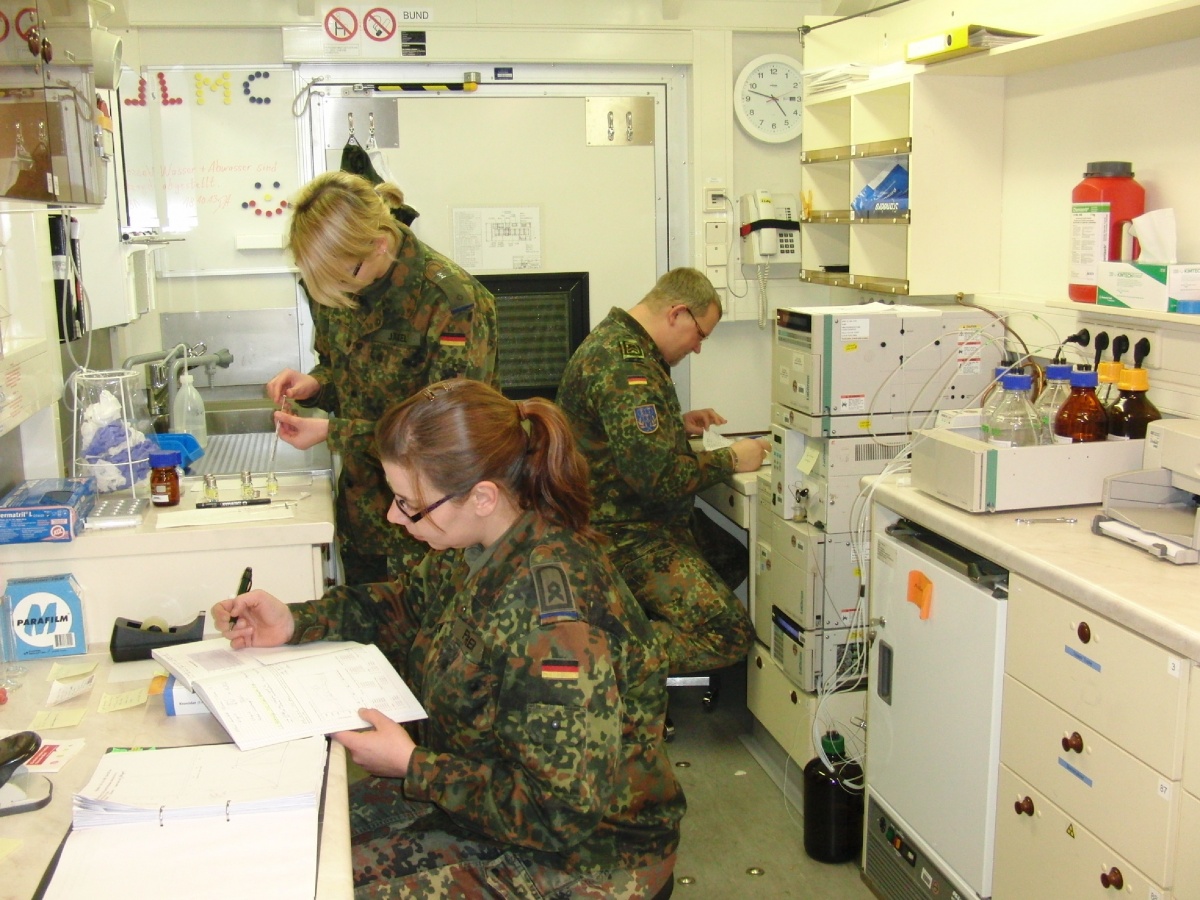 Waren die Lebensmittelchemiker in der UN-Mission 1993 in Somalia noch grundsätzlich darauf angewiesen, Proben für weitergehende Untersuchungen an die Basis Inland einzusenden, weil ihnen vor Ort nur wenige einfache nasschemische Untersuchungsverfahren zur Verfügung standen, so wurde in den Folgejahren im Zuge der Entwicklung der modularen Sanitätseinrichtungen (MSE) ein 20-Fuß Laborcontainer konzipiert, der Untersuchungen mit modernsten apparativen Techniken wie der Gaschromatographie, Hochleistungsflüssigkeitschromatographie, Photometrie, Massenspektrometrie, Kaltdampf-Atomabsorptionsspektroskopie und Elektrochemie im Einsatzland erlaubt.